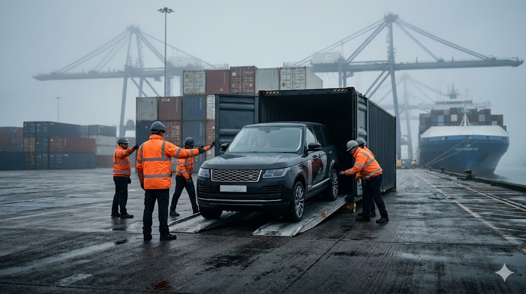 After export clearance, the vehicle departs via ocean freight to the Port of Southampton, one of the UK’s major automotive import hubs. Transit time depends on: